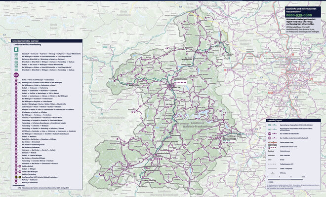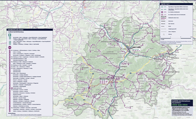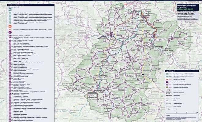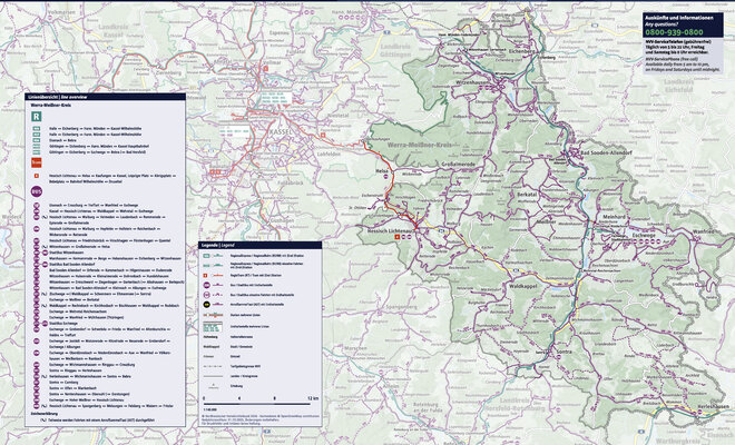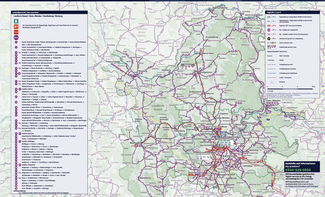 Here you will find an overview of the transit map according to the North Hessian counties and all transit maps of the larger cities in the NVV area, sorted alphabetically.