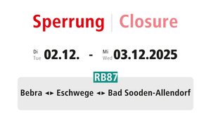 Ersatzverkehr (EV) mit Bussen eingerichtet.