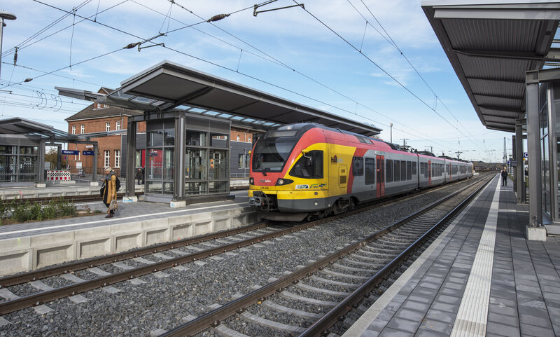 RE98. Die Busse halten nicht immer in unmittelbarer Nähe zum Bahnhof.